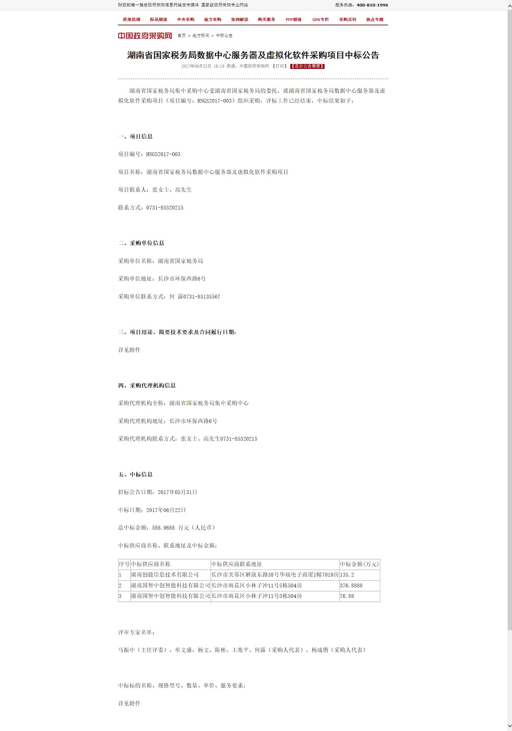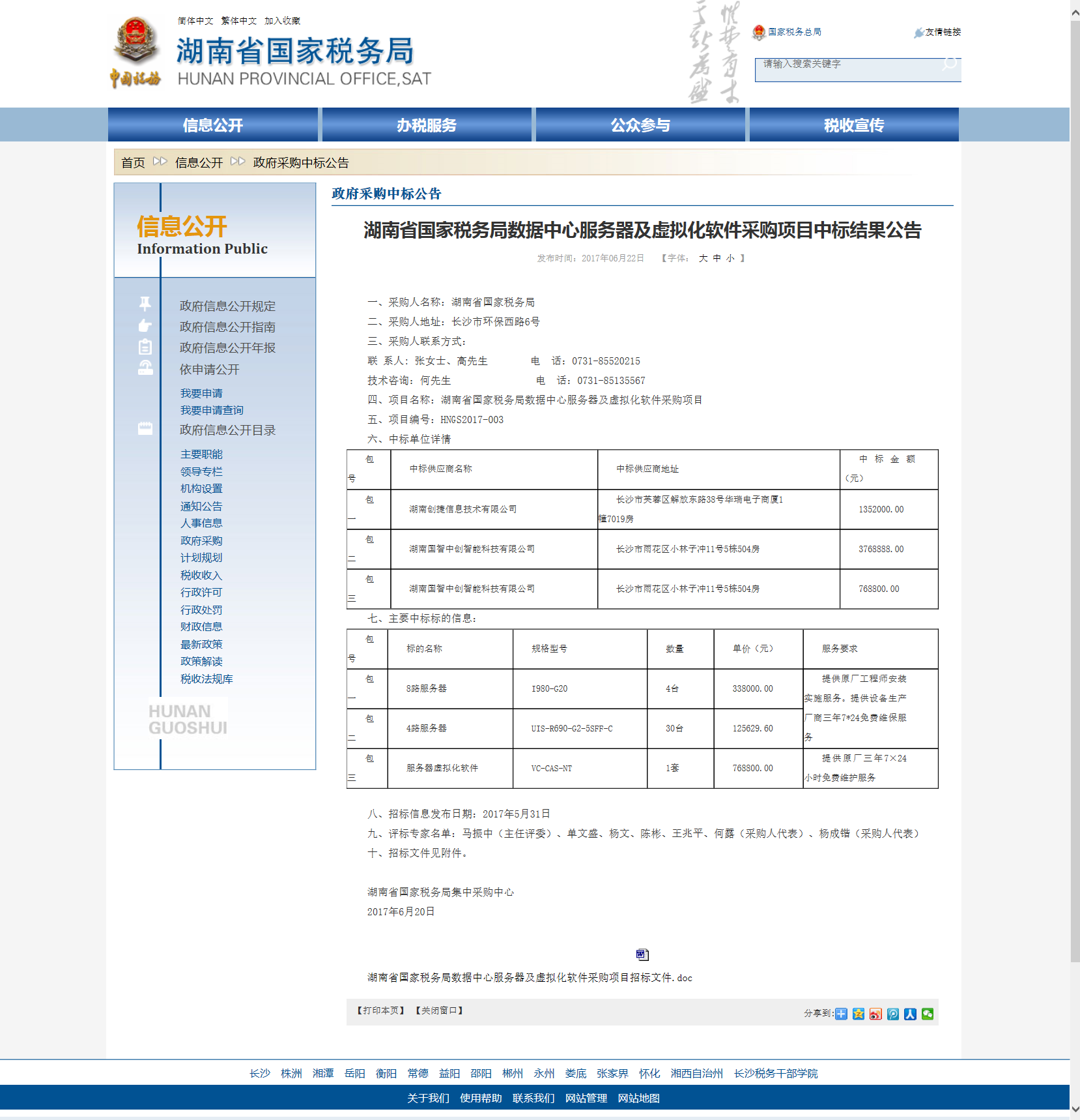 湖南省国税服务器及虚拟化软件采购